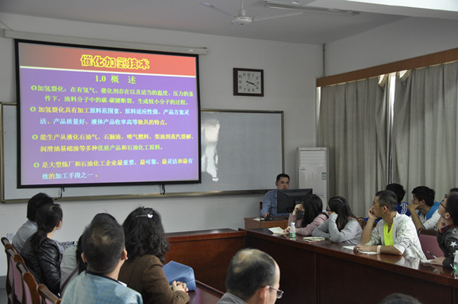 企业导师对金陵石化的发展历程、主要产品等向同学们做了简单介绍。在企业导师的带领下对厂区分块进行了学习,重点学习了催化裂化、催化加氢等相关工艺在实际生产中的流程及注意事项。在公司的学习室,生产专家为学生介绍了催化加氢技术的发展历程及最新的研究成果,详细介绍了催化加氢技术在金陵石化的生产规模及为国家建设作出的贡献。同学们参观了金陵石化的生态基地,在高地处俯瞰了整个公司并对总厂布局及构成有了深入了解。