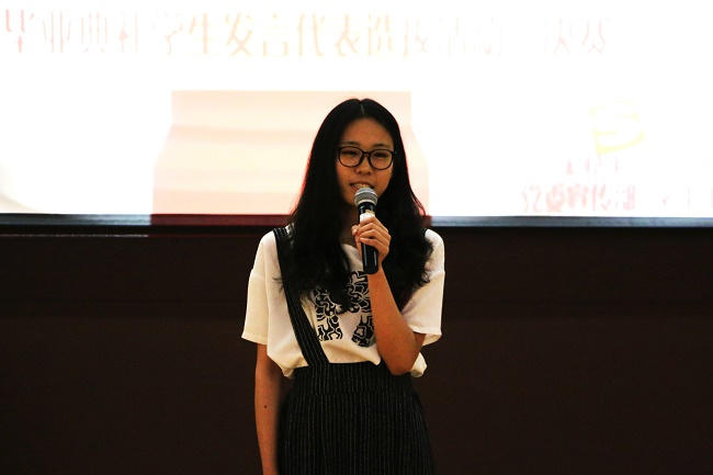 近日,“我要上典礼”2016届毕业典礼学生发言代表选拔活动决赛在文彰楼报告厅举行。党办校办、宣传部、校团委、教务处、学生工作处、离退休工作处、周有光语言文化学院相关老师出席活动并担任评委。各学院同学到场为选手加油助威。