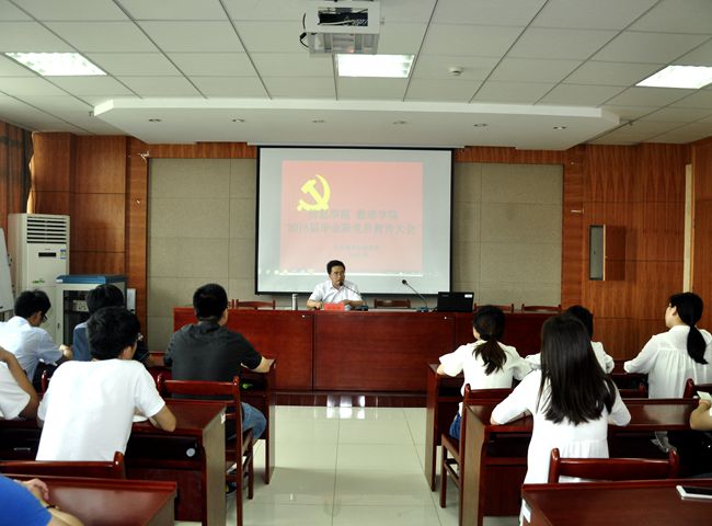 为加强毕业生党员的先进性和纯洁性教育,激励广大毕业生党员以积极进取的精神面貌踏上工作岗位,以实际行动迎接社会的挑战和考验,近日,信息数理学院在逸夫楼516会议室举行“两学一做”2016届毕业生党员教育大会。会议邀请院党委书记徐明华为党员同学上最后一次党课,学工办王欢老师和2016届毕业班学生党员参加了此次大会。