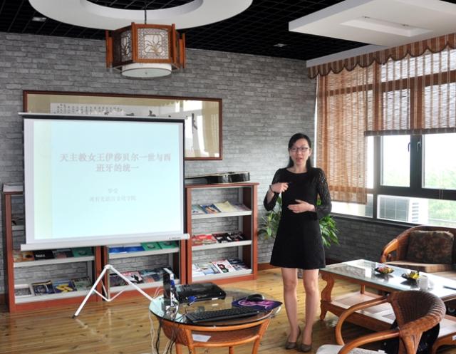 尹延安副教授进行了题为“晚清来华传教士译述中的语言文化互动”的讲座,从背景论、发生论、文本论、过程论等多个角度讨论了晚晴来华传教士在传教活动中对中国文化的影响。罗莹博士从“西班牙伊莎贝尔女王的传奇人生”的角度入手,梳理了伊莎贝尔女王、费尔南多国王的联姻经历及其统一西班牙的过程,并分析了西班牙历史上驱逐犹太人、收复格拉纳达等历史事件。