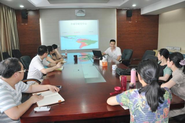 张琨博士以上海大学全球学研究中心在土耳其研究、拉美研究及全球学理论研究方面的建设情况为例,介绍了该中心在拉美研究领域与国外高校机构合作、国际研讨会举办、团队建设等方面的成功经验,并回答了学院教师提出的相关问题。
