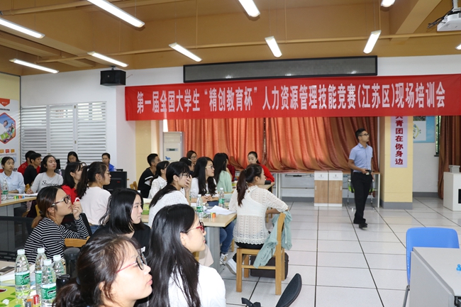 9月21日,第一届全国大学生“精创教育杯”人力资源管理技能竞赛(江苏区)现场培训会在我校举行。来至南京理工大学、江苏科技大学、中国药科大学等省内多所院校的师生代表50余人参加了培训。此次培训由商学院承办。
