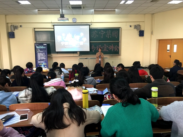会上,彭国伟介绍了苏宁的成长历程,过蕊梅着重介绍了苏宁1200工程校园招聘计划,招聘岗位主要有店长、财务、人事等,陈春燕作为常州大学校友分享了她在苏宁的工作经历和感受。现场开展了抢答题目、赠送礼物的活动,气氛活跃。会后,部分同学与工作人员进行了深入交流,有意向的同学当场填写并提交了职位申请表。(通讯员/黄安军)