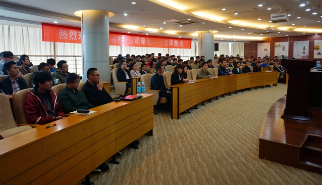 PEC公司陈龙敏校友进行了企业宣讲介绍,他就公司概况、组织架构、企业文化、用人培养等方面进行了详细阐述,副总裁钟明光对近年来我校给公司输送的毕业生的工作表现给予了肯定,还从企业发展前景、用人合同、公司制度规范等方面作了进一步的补充。招聘会间隙,应机械学院邀请,公司一行参观了机械学院实验室,学院党委书记柳铭、实验室刘文明、陈小洪等老师陪同参观并作进一步介绍。(通讯员 徐寅)
