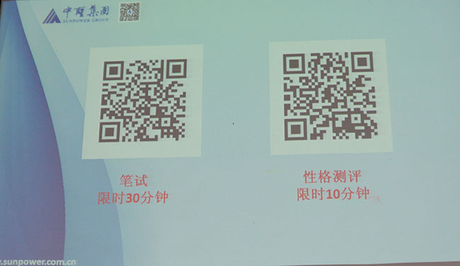 集团公司人力资源部招聘主管王宇尘、招聘经理孙煜楷分别对招聘用人要求和企业文化等方面作了进一步的宣讲介绍,随后的“互联网+应聘”模式开启:企业要求应聘学生利用手机扫描二维码进行在线笔试答题。随后,应聘学生与企业招聘专员进行了沟通、问询。