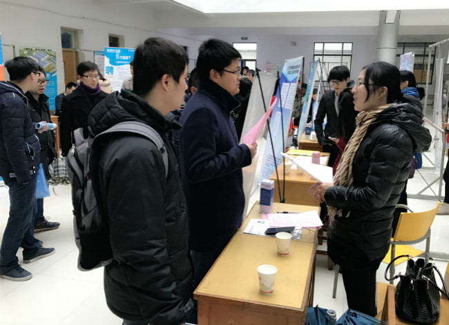 为了加强校企联动,跟进2017届毕业生就业工作,材料学院于11月26日在武进校区教学辅楼大厅举行了常州大学2017届毕业生公益招聘会材料科学类专场。校学生处副处长蒋伟中,材料学院党委副书记李文明以及校大学生就业指导中心相关人员,材料学院相关辅导员到招聘会现场接洽用人单位并指导学生参会。