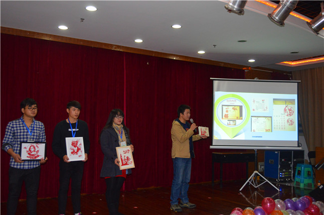 赛前主办方邀请部分同学与学生干部观摩并投票。赛中,由各参赛队伍用3至5分钟讲解其作品的创意、制作过程,甚至是背后的故事,参赛者需拍摄收集材料自己制作过程的照片,并结合文字图片制成PPT,最后现场评委进行提问,并给出评分。每组选手制作的剪纸都紧扣主题,生龙活虎,喜气洋洋,在细节上也毫不大意。经过评委们的认真考虑和激烈讨论,以朱荣誉为代表的小组获得比赛一等奖。所有获奖的优秀创意剪纸,将制成展板在辅楼大厅进行展示。