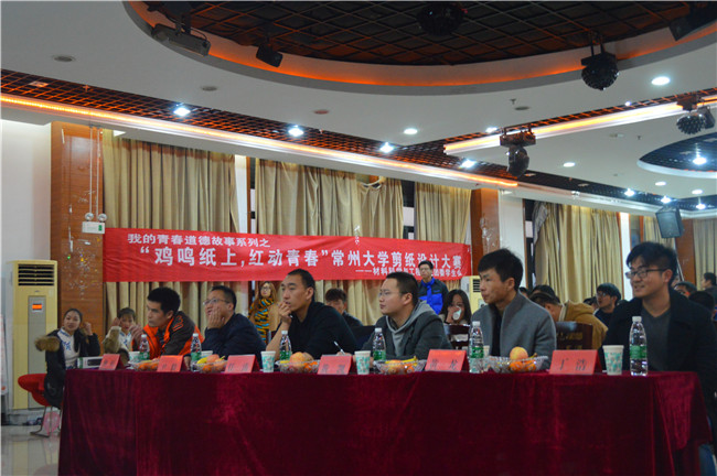 近日,由材料科学与工程学院学生会主办的“青春道德故事”系列“鸡鸣纸上,红动青春”——挂年历封面创意剪纸设计大赛的决赛在大学生活动中心三楼多功能厅举行,共有13组选手进入了本次决赛环节。常大“剪纸哥”丁浩、各学院团委书记、材料学院辅导员担任此次比赛的评委。