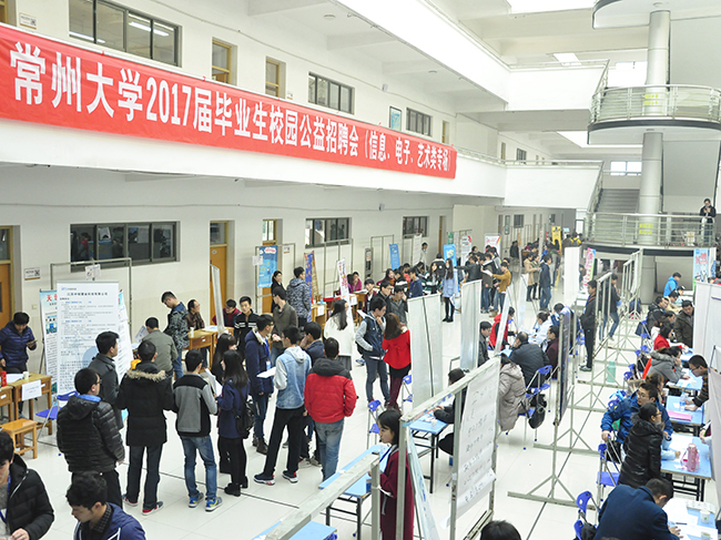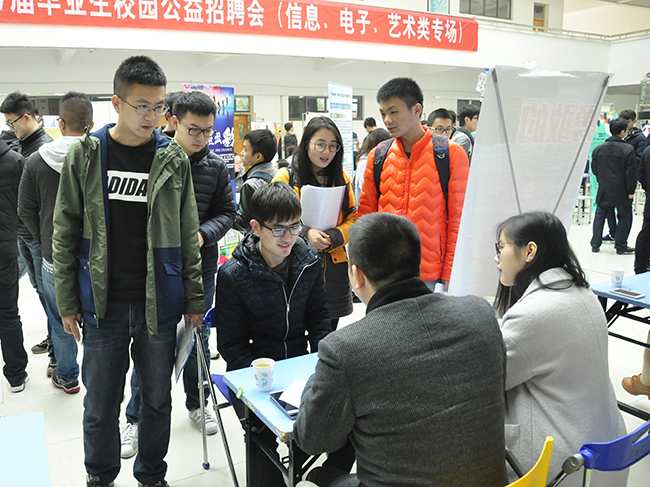 为切实做好2017届毕业生就业工作,12月4日,由常州大学就业指导中心、信息数理学院和艺术学院联合主办的“常州大学2017届毕业生校园公益招聘会(信息、电子、艺术类专场)”在教学辅楼大厅举办。学院17届全体本科、硕士毕业生参加了此次招聘会。校学生处、信息数理学院、艺术学院领导、各专业教师、学工办辅导员及就业指导中心老师到招聘会现场与用人单位交流,并对应聘的学生给予全程指导。
