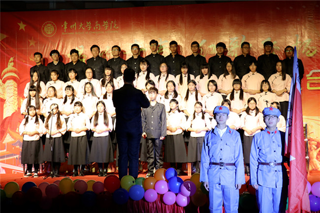 为纪念“一二▪九”爱国运动,培养大学生爱国主义精神和集体主义精神,商学院于12月6日在常州大学白云校区南区广场举办了以“唱响青春,红歌飞扬”为主题的合唱比赛。商学院党委书记江涛涛、党委副书记陈曙钧、副院长姜国刚,2016级教师班主任和全体辅导员现场观看了演出,2016级全体新生参加了比赛。