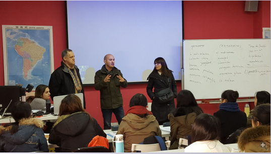 杜志峰副院长介绍了我校近年来国际交流合作的成果。孔文院长介绍了周有光语言文化学院的发展情况。大卫·米罗·帕拉介绍了学校的地理位置、校园环境、学校排名及办学特色,并欢迎西语专业及其他专业学生到该校学习交流。
