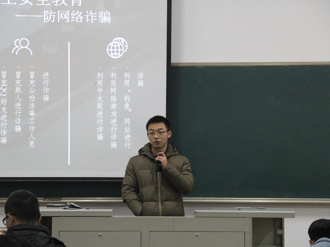 为了提高同学们的安全意识,防止网络诈骗事件发生。近日,石油工程学院在s401教室举行了大学生防网络诈骗安全教育讲座。石油工程学院学生参加了本次讲座。