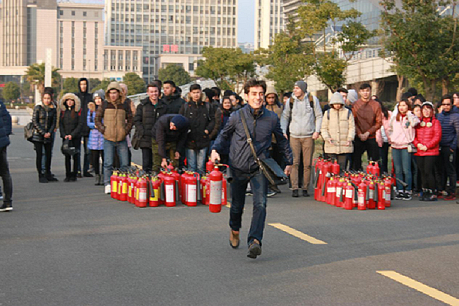 为进一步强化我校留学生消防安全教育,提高抗击突发事件的应变能力,12月27日,国际交流处、保卫处共同举办了以“强化意识,防患未然”为主题的消防灭火演练,本次消防演练活动共有120余名留学生参加。
