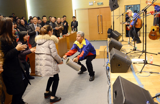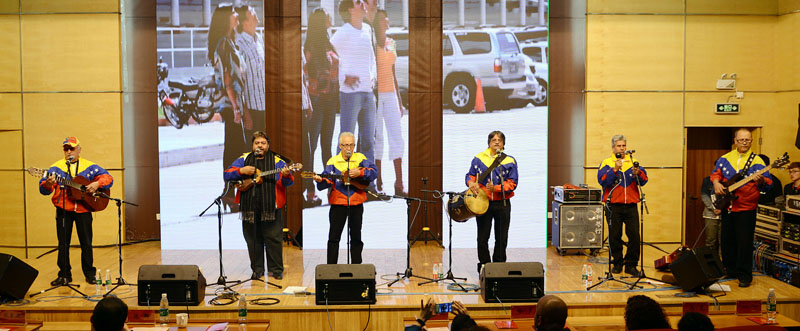 为庆祝常州大学与委内瑞拉玻利瓦尔大学共建孔子学院正式开课,进一步推动中委两国在文化和教育领域的深入交流,委内瑞拉驻华大使馆专门邀请委内瑞拉著名乐队——黑豆组合于3月13日在常州大学举办“委内瑞拉为孔子献歌”专题音乐会。委内瑞拉驻华大使馆参赞玛丽亚•培尼亚、哈罗•拉坦•卢塞斯等嘉宾出席音乐会,常州大学校长陈群,党委副书记、副校长陈奎庆,副校长陆锦冲、苏旭平,相关职能部门负责人及全校近350位师生一同观看了音乐会。我校精选了具有中国传统文化特色的音乐节目共台演出。