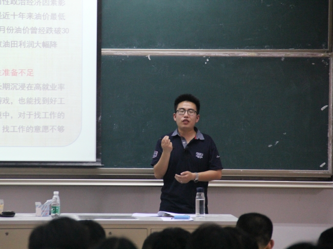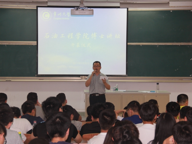 开幕仪式后,石油工程系青年教师、石油工程专业留学生英文班班主任窦祥骥博士主讲了“博士讲坛”系列活动的第一讲。窦祥骥用生动、幽默的语言,介绍了石油工程专业与油气储运工程专业的背景、现状、知识体系和科技进展,以及毕业生的就业和考研情况,分享了学习和科研的心得,让同学们对石油行业有了清晰的了解。