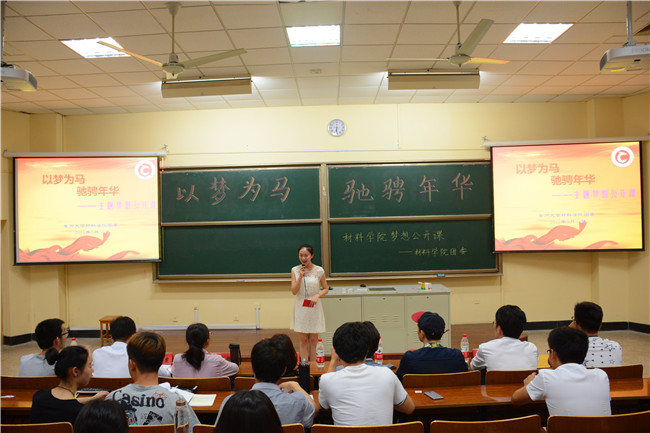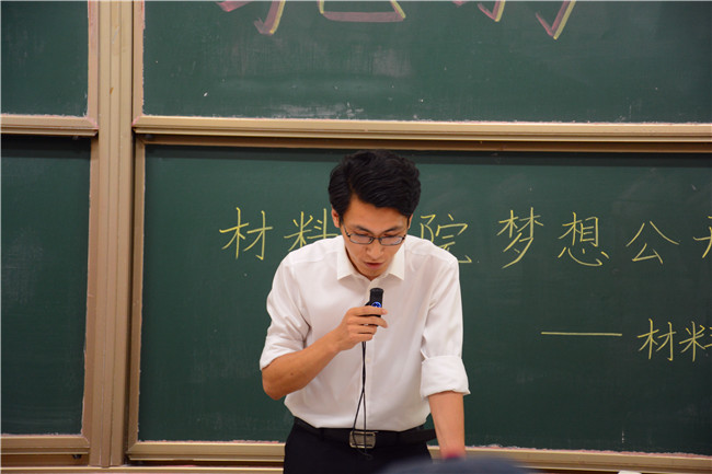 5月31日晚,材料学院在8阶举办了“以梦为马 驰骋年华”主题梦想公开课,马克思主义学院党总支副书记、副院长衡孝庆,马克思主义学院院办主任杨海霞以及材料学院团学骨干和学生代表参与了此次活动。学院获得校大学生年度人物称号的缪斌、范隆显、郭惠铭三位同学及衡孝庆老师担任公开课的主讲。