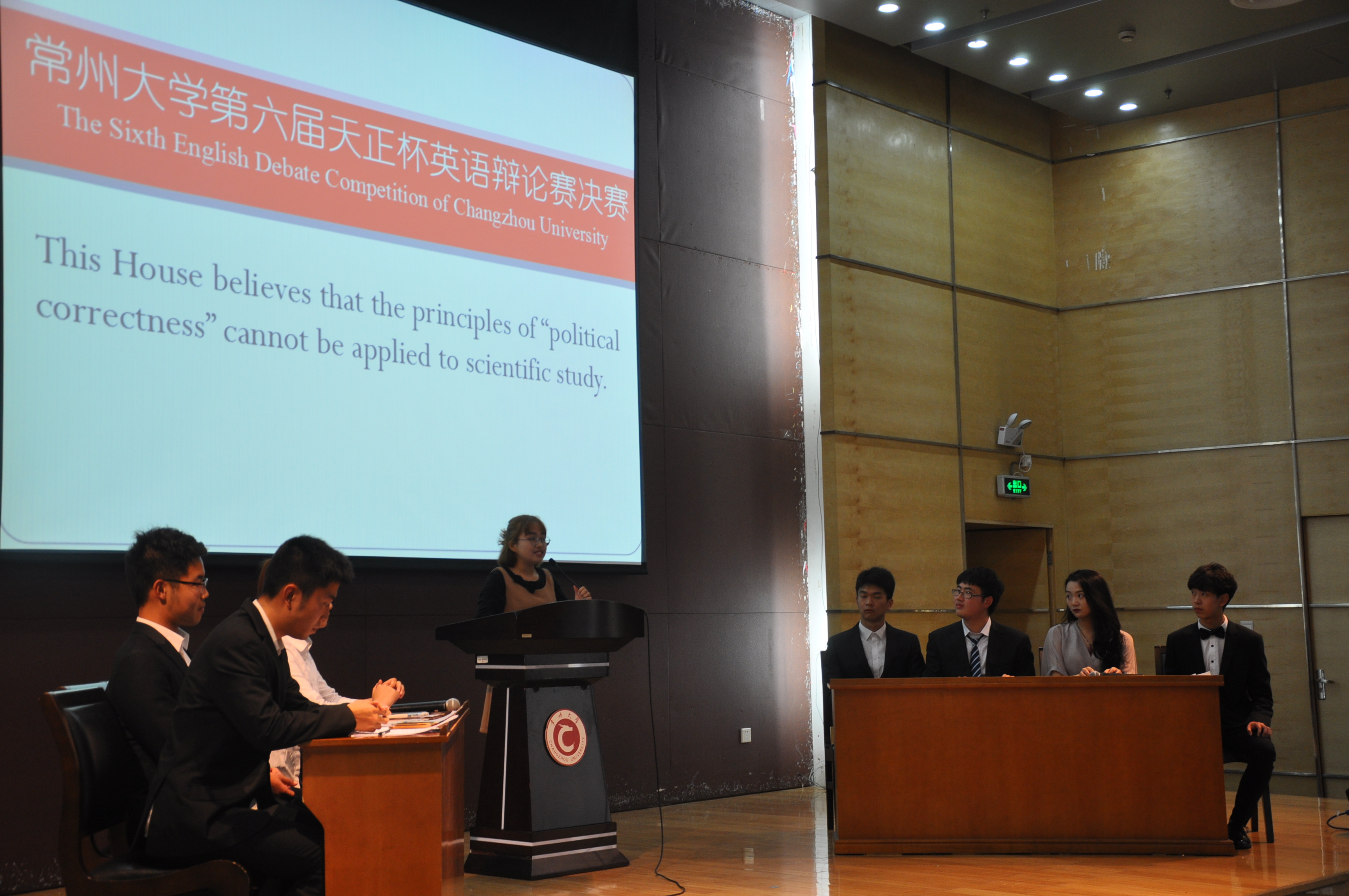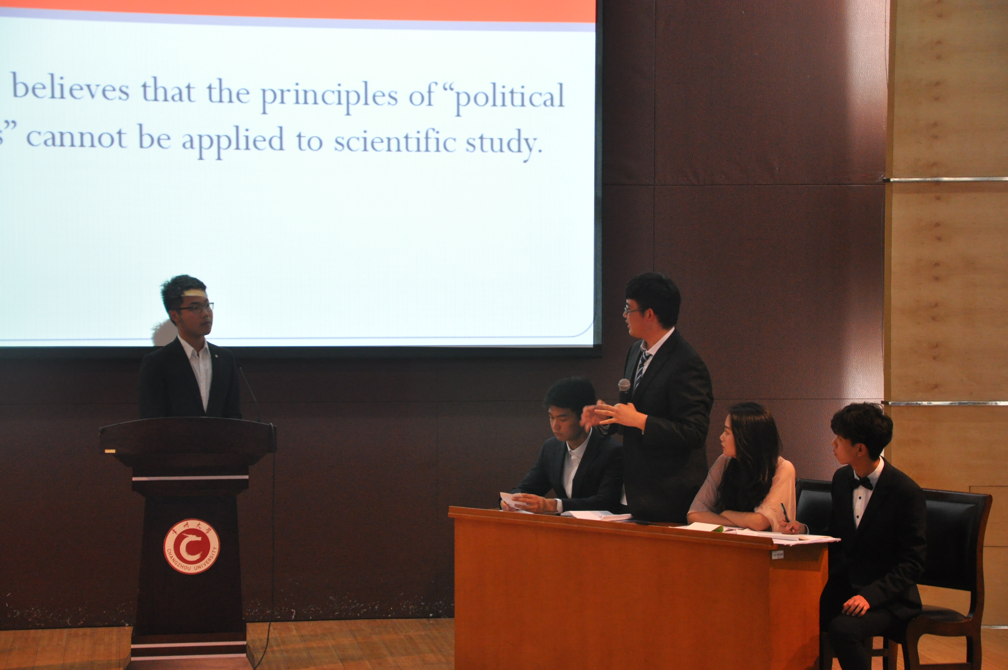 6月6日下午,常州大学第六届“天正杯”英语辩论赛决赛在文彰楼报告厅顺利举行,教务处副处长赵斌、国教院副院长杜志峰、周有光语言文化学院副院长刘丽敏以及英语外教Adam Morris担任本次决赛评委。