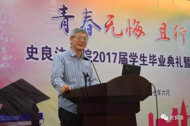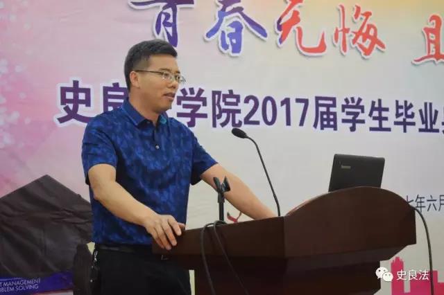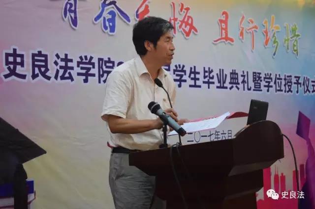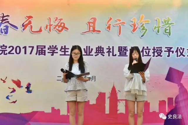 王永利宣读了史良法学院关于表彰2017届优秀毕业生、优秀学生标兵、考研先进个人、考研先进集体的决定,并为受表彰的各位同学颁发荣誉证书。优秀毕业生代表颜赛楠上台发言,她回忆起过去四年学习、实践的情景,表示这些经历以及师恩、友情的一路陪伴让她的大学充实而精彩,也让她对母校满怀深深的感恩和祝福。曹义孙、骆福林分别讲话,幽默风趣的语言充满了对毕业生的祝福与殷切希望,希望同学们始终牢记校训,坚持终身学习,勇于实践,志存高远,成长为社会的精英和国家的栋梁。