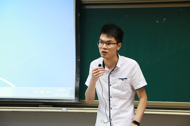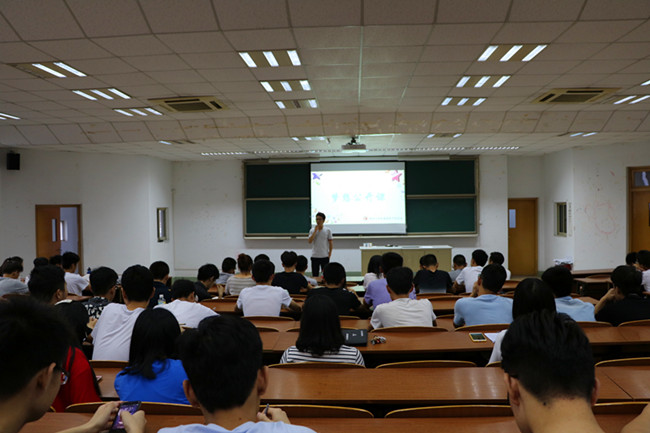 田玉祥以“常怀壮志 大有可为”为主题从简历的填写和专利的申请两方面来鼓励同学们多多参加校内校外的比赛,从而提升自身的能力。周振中结合自己四年的生活体会,向学弟学妹们介绍了如何处理好学习、比赛、考研的关系,并且用了“榜样、争取、坚持、价值、极致、务实”六个关键词畅谈大学生活。最后,董译文在期末考试即将到来之际鼓励同学们明确目标,向优秀青年学习,接过“榜样”这一接力棒。(通讯员 唐龙)