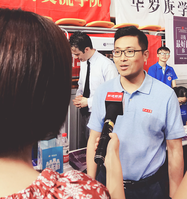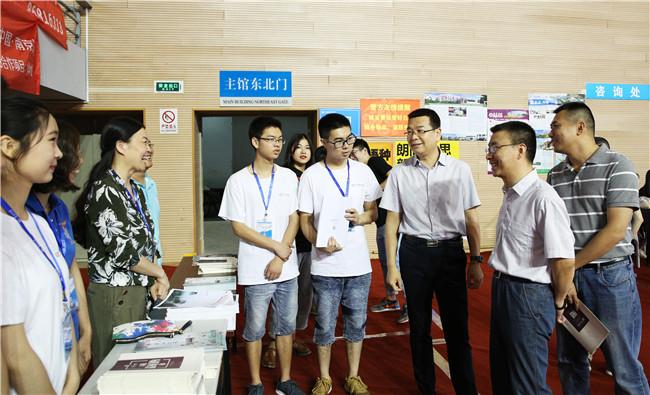 省高校招生就业指导服务中心主任鲁学军等一行,在常州大学党委副书记、副校长陈奎庆和学校职能部门同志的陪同下现场检查指导工作并探望各校招生宣传人员。