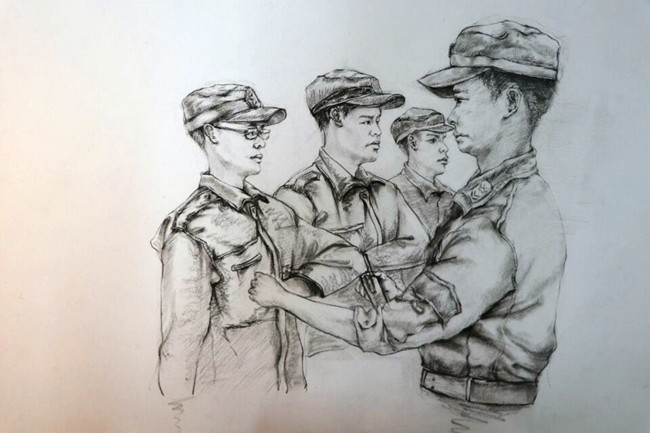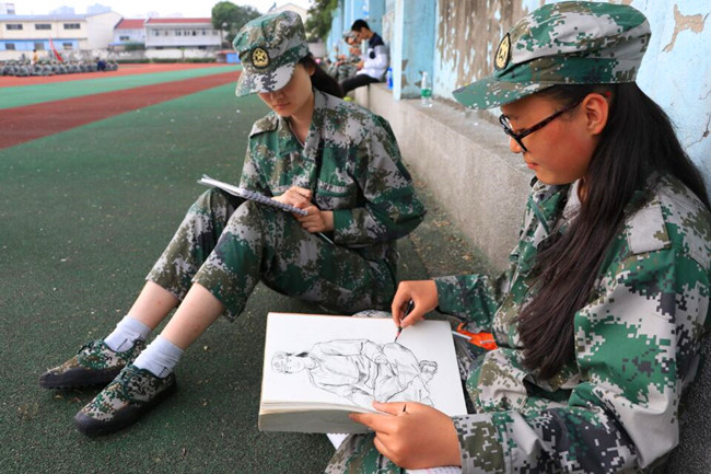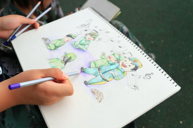 艺术学院、泰然影视学院的2017级新生以速写、素描、漫画、水彩等形式呈现自己的军训故事,教官或严肃或活泼的表情流露、同学生硬而认真的动作训练、连队多彩而丰富的才艺比拼……军训中的这些小事,在新生笔下妙趣横生、多姿多彩。