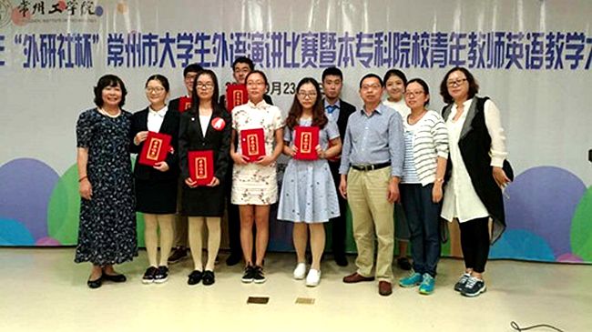 9月23-24日,由常州市教育局、共青团常州市委主办,常州工学院承办的“外研社杯”常州市大学生外语演讲比赛暨本专科院校青年教师英语教学大赛圆满举行。周有光语言文化学院王小燕老师获得教学大赛第三名;古田岛和美、吴丽霞老师指导的徐佩、郭芳同学分获日语专业组一、二等奖,王金东、刘萍老师指导的高健、常震宇同学分获日语非专业组二、三等奖;陆婷、王宁、冯薇老师指导的蔡佩珊、朱璇和仓志鹏同学获得英语本科组三等奖。
