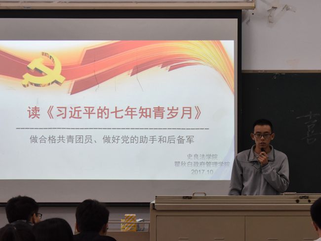为深入学习习近平总书记系列重要讲话精神和青年工作思想,增强“四个意识”,坚定“四个自信”,以实际行动迎接党的十九大胜利召开,10月11日下午,史良法学院、瞿秋白政府管理学院团委在白云校区南区202开展“喜迎十九大 与青春对话”主题活动。院团委各部门、8名受聘团支部辅导员以及相关学生参加了此次活动。