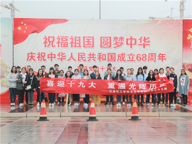 10月15日,值党的十九大即将召开之际,石油化工学院 食品学院第二学生党支部组织支部成员和入党积极分子开展了以“喜迎十九大 重温光辉历史”为主题的主题党日活动。