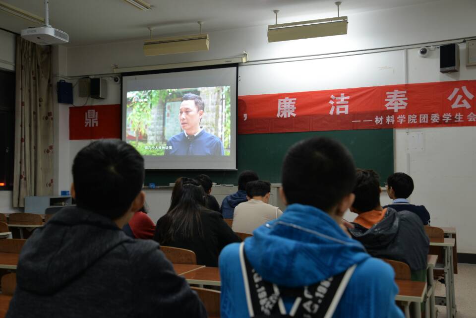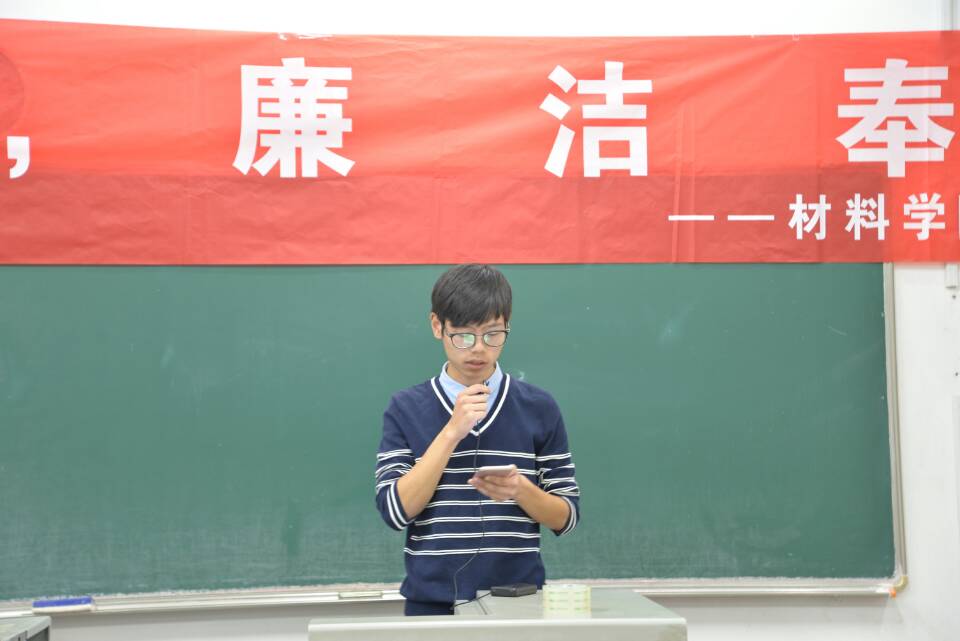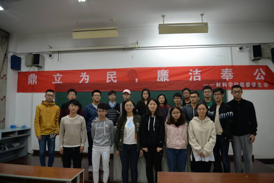 为学习贯彻习近平总书记在党的十九大报告中关于从严治党的相关精神,落实廉政文化进校园工作安排,10月29日,材料学院在主楼606举办了“鼎立为民 廉洁奉公”主题学习活动,学院团学全体骨干参加了活动。