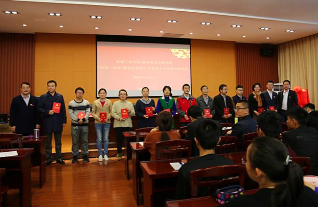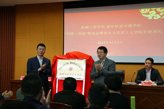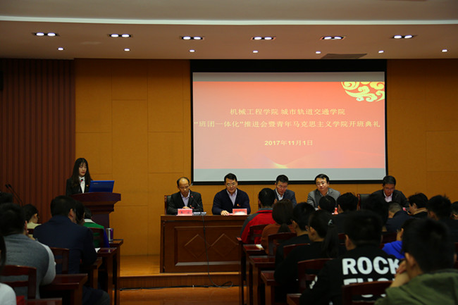11月1日,机械工程学院 城市轨道交通学院“班团一体化”推进会暨青年马克思主义学院开班典礼在机械石油楼二楼报告厅成功举行。校团委书记周晓东、团委副书记张精华,机械工程学院 城市轨道交通学院党委书记柳铭、党委副书记葛涛,2016级、2017级全体团支部辅导员,学工办老师以及全体团支部骨干参加了活动。