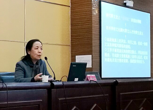近日,南京大学文学院曹虹教授应邀为我校周有光语言文化学院师生作了题为“清代常州骈文集群形成的地理机缘——以家族与交友为视角”的学术讲座。周有光语言文化学院中文专业全体师生、常州大学(常州社科院)历史所全体专兼职研究员、江苏文脉工程常州地方文化史编撰研究组全体成员、相关文科学院师生等100多人参加了讲座。周有光语言文化学院副院长葛金华主持讲座。