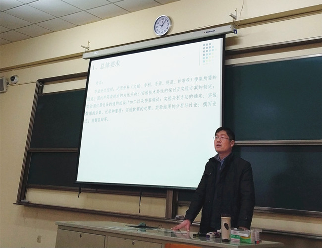 会上,薛冰对2018届毕业生的毕业设计和毕业论文情况作了详细的说明,他强调,毕业设计(论文)是学生完成毕业要求前最后一个实践教学环节,也是学生完成解决复杂化工问题培养最重要的一个环节。通过毕业论文环节的训练可以使学生全面运用所学到的理论知识,并使其综合、巩固和深化,通过对文献资料的收集研究和实验结果的分析讨论,培养和提高学生选择试验路线,制定试验方案,以及运用各种测试手段的能力等。