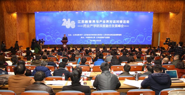 12月29日,由江苏省教育厅、江苏省经济和信息化委员会、江苏省食品药品监督管理局主办的“江苏教育界与产业界对话对接活动——药业产学研深度融合发展峰会”在中国药科大学举行,江苏省人民政府副省长王江、江苏省教育厅厅长葛道凯、江苏省经济和信息化委员会副主任高清、江苏省食品药品监督管理局副局长王越、南京市人民政府副秘书长吴秀亮、淮安市人民政府副市长顾坤、泰州市人民政府副市长郑卫国、江苏省医健产业联盟常务副理事长王冬青等出席活动。常州大学校长陈群应邀出席了活动,产学研合作处、教务处、制药与生命科学学院负责人参加了活动。会议由葛道凯主持。