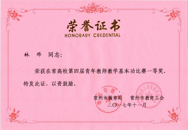 林烨自2015年8月入校,先后获得“2016年度青年教师课堂教学技艺大赛”二等奖、“在常高校第四届青年教师教学基本功比赛”一等奖,并在“2017年全省高等学校微课教学比赛”校内比赛中获得省赛资格。(通讯员 黄龙)