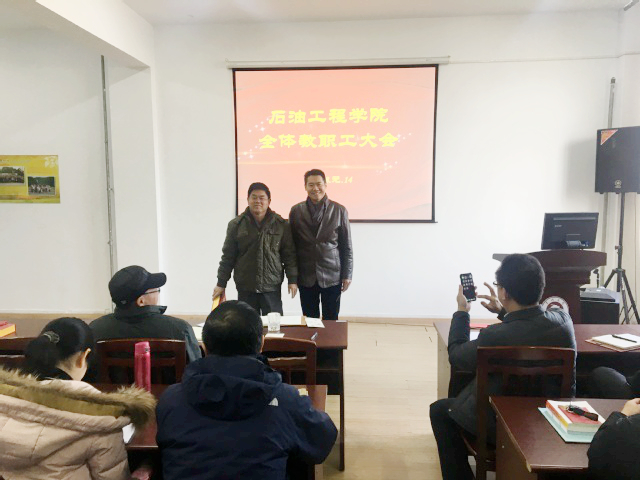 1月14日上午,石油工程学院在学院三楼306会议室举行2017年工作总结大会暨2017年度工作表彰大会。学院党政领导及全体教师参加了大会。会议由石油工程学院院长陈海群主持。