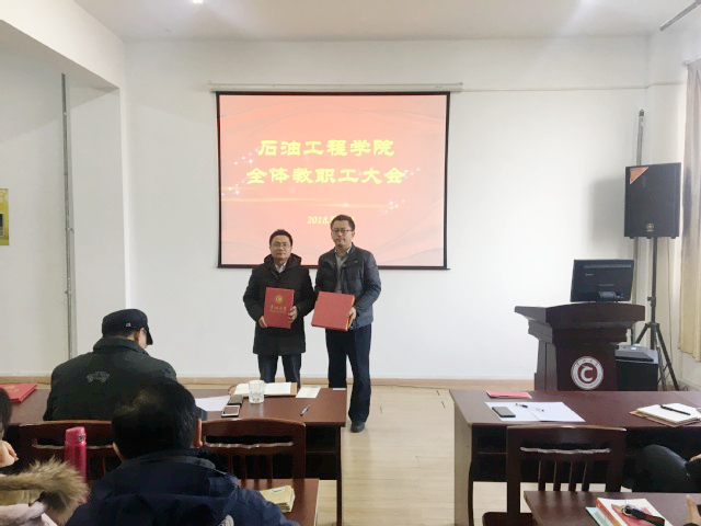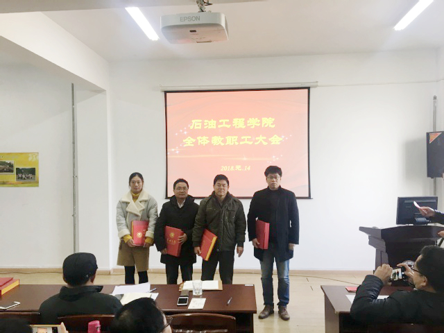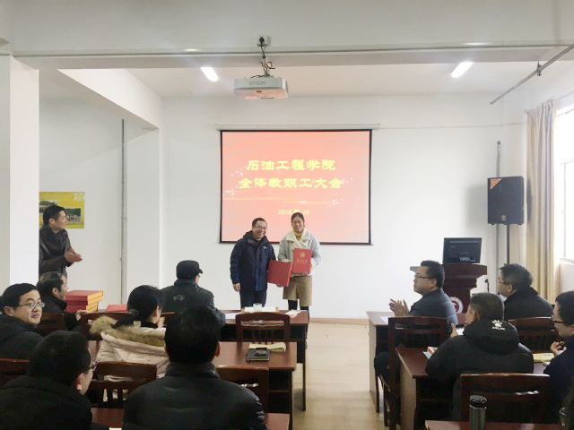 学院负责人总结了学院2017年的工作,学院在学科建设、科学研究、学生工作等众多方面取得了突破性的成绩,凝聚了石油工程学院老师们的辛勤汗水。会上表彰了工作中涌现出的典型代表,王树立老师获得研究生培养工作“最佳奉献奖”,黄维秋老师获得科研教学工作“最佳奉献奖”,纪国剑老师获得本科生教学工作“最佳奉献奖”,宋佳、李恩田两位老师获得学生工作“最佳奉献奖”。获奖老师登台领奖并发表获奖感言。(通讯员 王卫卿)