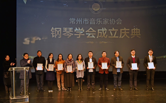 1月31日,常州市音乐家协会钢琴学会在凤凰谷剧院正式成立。常州市委常委、常州军分区司令员马绪春,常州大学校长、党委副书记陈群,常州大学党委副书记、副校长陈奎庆,著名作曲家晁岱健,江苏省音乐家协会副秘书长吴盛栗、赵彤等领导出席大会,来自江苏省其他艺术院校的同仁、常州市音乐家协会的负责人、常州市钢琴艺术爱好者、常州大学师生代表等百余人参加成立大会。