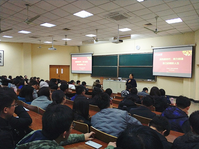 3月5日,石油化工学院 食品学院在W5举行2018届毕业生年级大会,大会以“拥抱新时代 努力创造自己的精彩人生”为主题,院党委副书记宣慧、副院长薛冰、各专业辅导员及2018届全体毕业生参加大会,大会由辅导员周本卫主持。