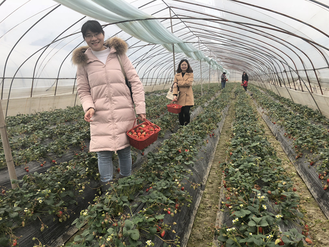 活动现场,塑料大棚里一片生机勃勃的场景:翠绿的叶子、鲜红欲滴的果实、芬芳的果香,女教师们都陶醉于春意萌动的生机中。女教师们一边摘草莓,一边交流彼此的工作和生活,既享受到了田园清新的气息,又体验了采摘草莓的乐趣,感受到了新时代社会主义中国的幸福生活。(通讯员 嵇炜)