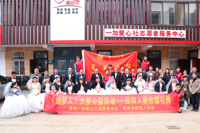 此次“追梦人”大型公益集体婚礼由常州一加爱心公益服务中心与常州市肢残人协会主办,为13对残障夫妻完成婚礼梦想。通过这场特殊的大型公益集体婚礼志愿活动,旨在呼吁更多大学生、当代青年去关心与理解残障人士,给予他们信任与支持的力量。(通讯员 尹毅)