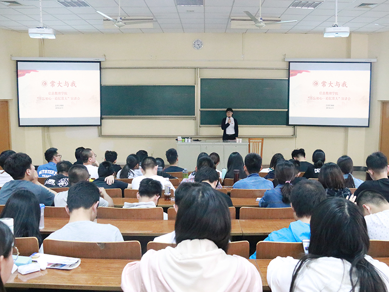 为喜迎常州大学建校四十周年,信息数理学院开展“不忘初心 追忆常大”主题教育活动,特邀常州大学发展“见证人”王洪元教授作“常大与我”忆史励志教育讲座。学院学工办老师、全体班委及学生会、社团骨干参加了此次讲座。讲座由院党委副书记常愉主持。
