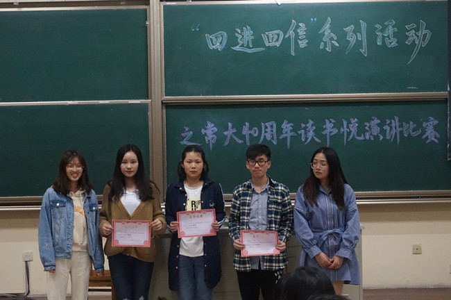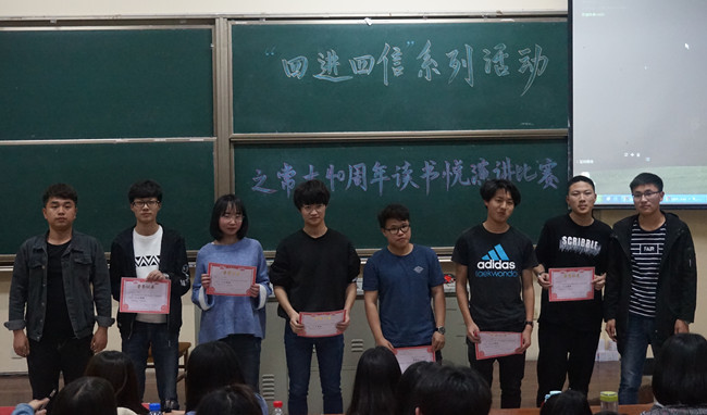 选手演讲内容紧随时事,联系实际。经过了一个半小时的激烈角逐,比赛评出了一等奖两名、二等奖三名、三等奖六名,并为获奖选手颁发了奖状。(通讯员 方姗姗)