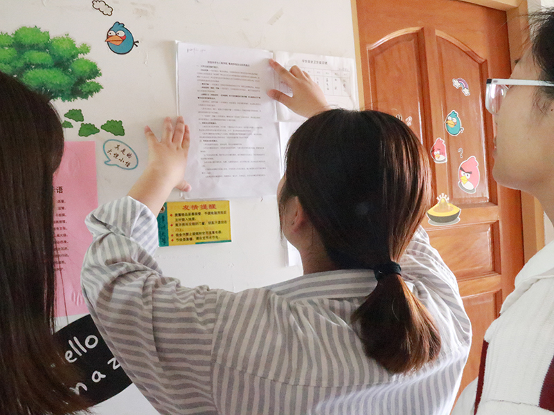 为普及校园安全知识,增强学生安全意识,5月4日下午,信息数理学院学生干部走进学生宿舍,进行安全知识宣传并张贴安全防范提示。