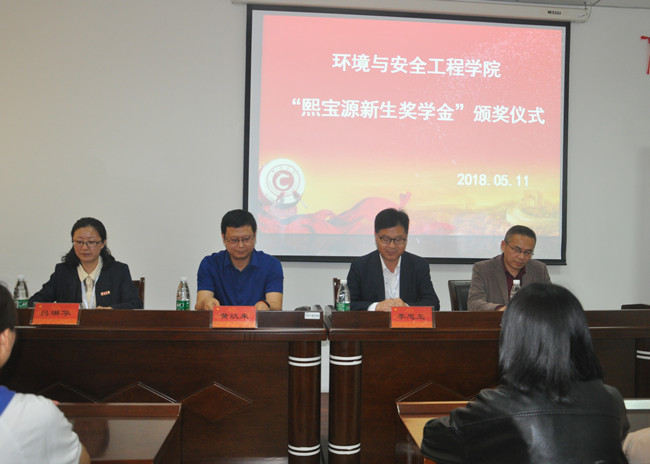5月11日下午,“熙宝源新生奖学金”颁奖仪式在明行楼341会议室举行。厦门熙宝源集团董事长黄玖来、厦门熙宝源集团江苏分公司副总经理汪美红、环境学院院长李忠玉、院党委副书记吕琳华、辅导员老师、获奖学生和各专业学生代表出席了颁奖仪式,会议由吕琳华主持。