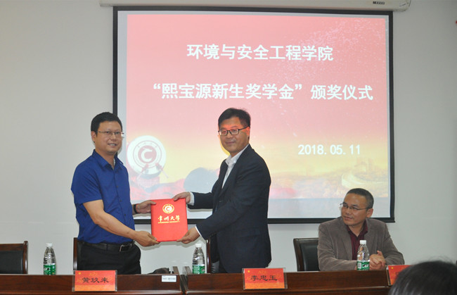 会上,李忠玉首先代表学院致欢迎辞。他感谢与会企业长期以来的大力支持,介绍了学校在应用型人才培养特别是校企合作中的重要举措,对校企合作、专业发展和学生成长进行了展望。李忠玉为黄玖来颁发了捐赠证书。黄玖来宣读了“熙宝源新生奖学金”获奖学生名单,本次环境学院共有16名学生获得熙宝源新生奖学金资助。企业代表和学院领导为奖学金获得者颁发证书。