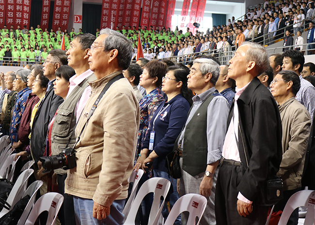 教师代表、77级学生、石油化工学院何明阳教授讲述了自己四十年在常州大学求学、工作、耕耘、收获的点点滴滴,四十年他一直默默坚守着常大这片热土,为学校硕果盈枝、桃李满园贡献着自己全部的力量。他回忆,学校创办之初,大家艰苦奋斗,负重前行,“特别能吃苦”是那一代常大人的真实写照;四十年来,常州大学的教师们志存高远、勇担责任,“精于专业,长于育人”是他们坚定的理想和执着的坚守。何明阳呼吁师生做好学校历史的铭记者、传承者和书写者,并用“千教万教教人求真,千学万学学做真人”予以共勉。