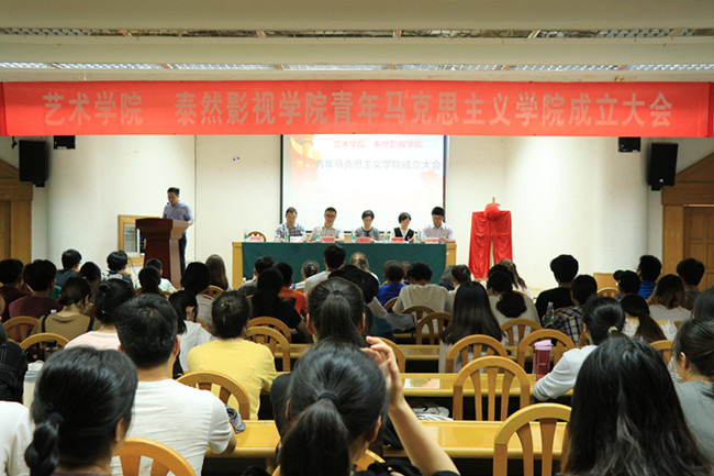 为深入学习宣传习近平新时代中国特色社会主义思想和党的十九大精神,全面贯彻中央群团改革决策部署,在广大团员青年中开展好“学习习近平总书记讲话 做合格共青团员”主题教育实践活动,5月16日下午,艺术学院在白云校区举行了“青年马克思主义学院”成立仪式暨首期培训班授课。校团委挂职副书记顾现朋、马克思主义学院教师李晓江出席成立仪式,艺术学院党委书记周霞、党委副书记唐琳、院团委书记朱睿和青年马克思主义学院学员共同参加大会。会议由院学工办主任尹毅主持。