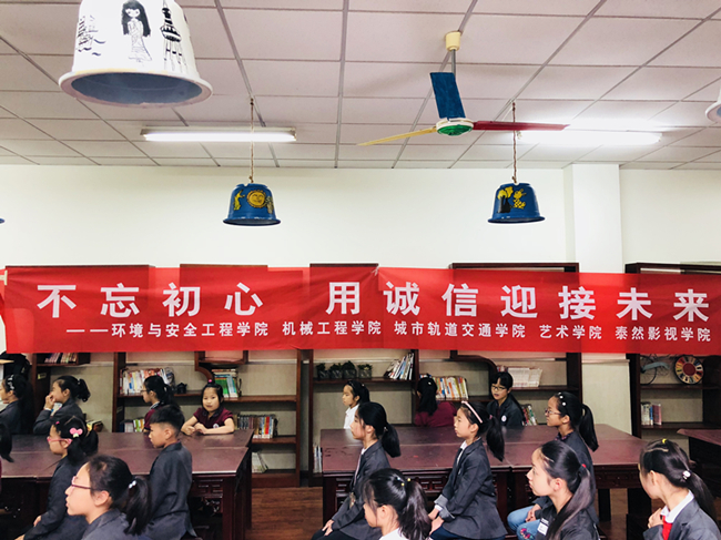 本次活动以“诚信”二字为宗旨,走进小学校园,不仅帮助小学生从小养成诚实守信的习惯,也加深大学生们对“以信立人、处世”的理解。(通讯员 方姗姗)