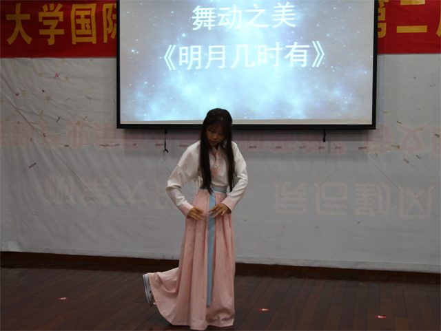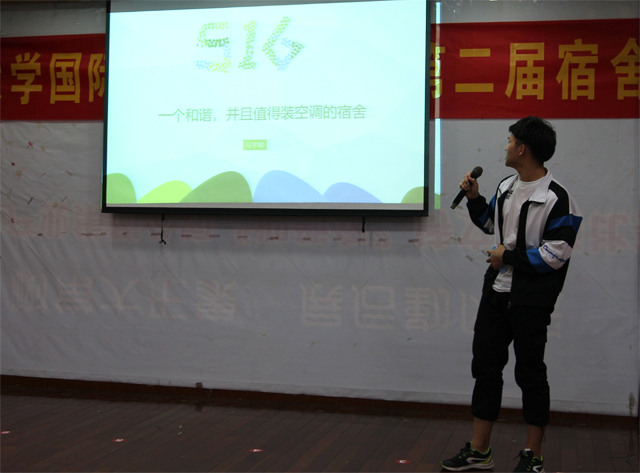 近十组参赛宿舍通过集体精心制作的PPT向观众们展示了宿舍美化环境成果、宿舍座右铭、成员风采等内容。宿舍代表的精彩解说赢得掌声阵阵,随后各宿舍成员带来了精彩的文艺表演,黑管独奏《天鹅湖》、配乐诗朗诵《相约常大》、钢琴演奏《保卫黄河》、舞蹈《明月几时有》、男声演唱《晚安》等节目,充分展现了国际学院学子的青春活力与精彩才艺。