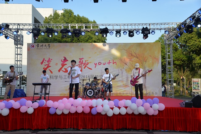 6月11日晚,材料学院“笑忘歌”2018届毕业生晚会在水月广场举行。院党委书记汪国余,院长朱卫国,副院长魏伟、张洪文,相关专业教师,全体辅导员及毕业生参加此次晚会。